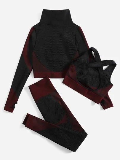 Yoga Basic 3pcs Seamless Stripe Panel Sports Set & Thumb Holes