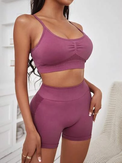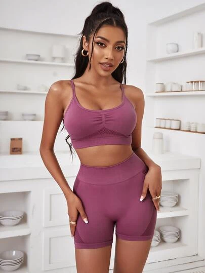 Yoga Basic Criss Cross Back Ruched Bust Sports Set