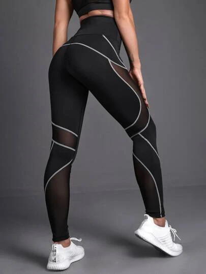 Yoga Future Mesh Panel Topstitching Sports Leggings