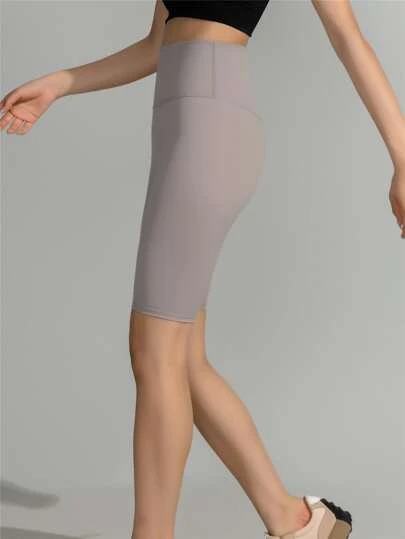 Yoga Shorts Mid-thigh Length Tights High-waisted Stretch Fitness Shorts